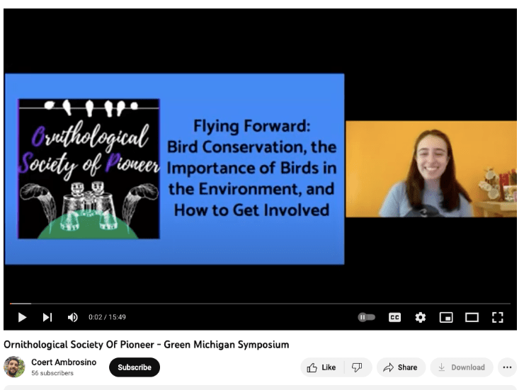 - Co-founding a statewide young birders group, the Michigan Young Birders Network (MYBN) and serving as their counselor at the Michigan Young Birders Camp (MYBC) (2021-2022)